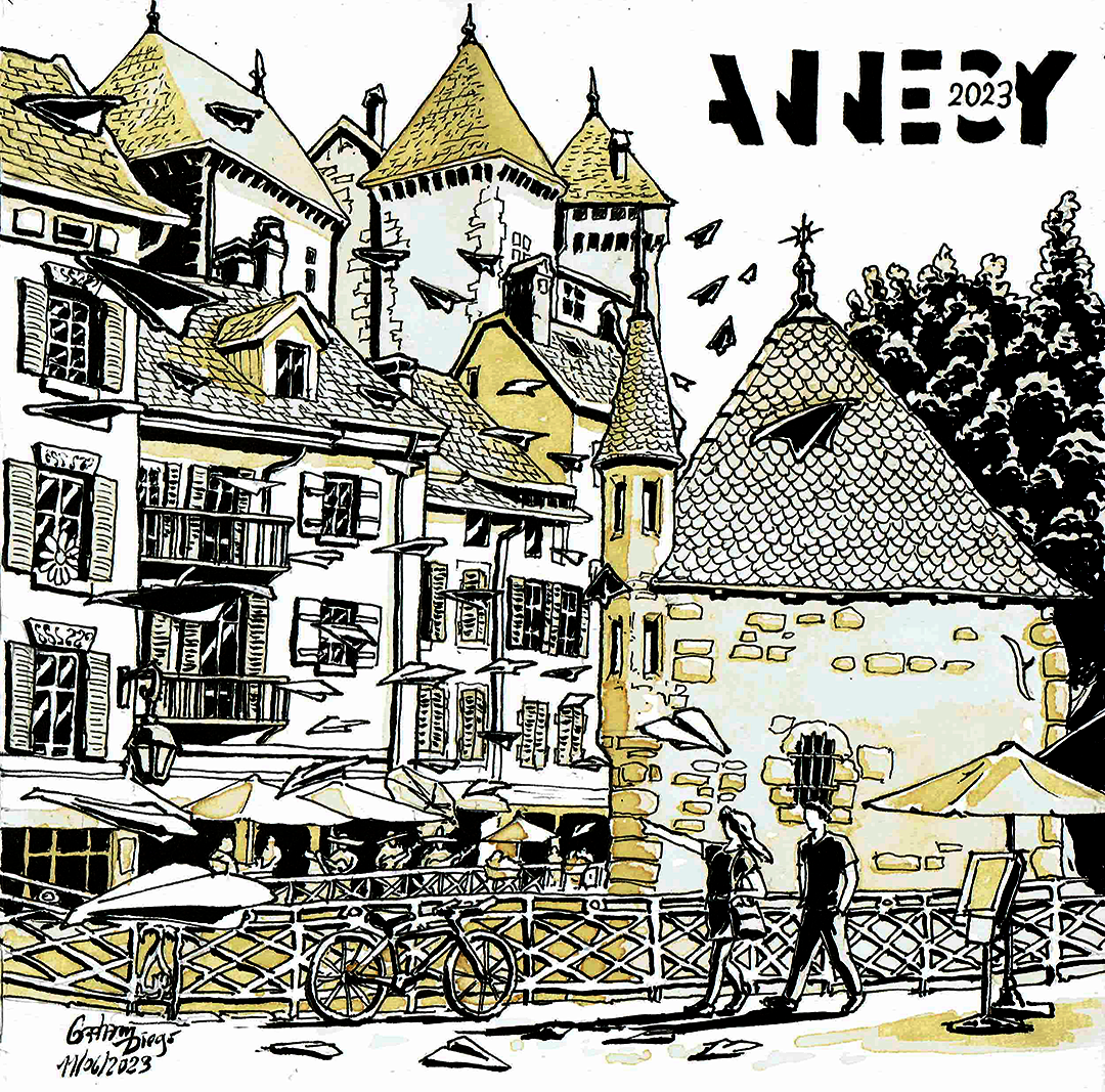 Here’s a sketch I made on the last day of the Annecy International Animation Film Festival, where I’m in charge of the XR/VR room. It represents the excitement and magic brought by the spectators and artists who pass through the city during this amazing event each year in June (2023)