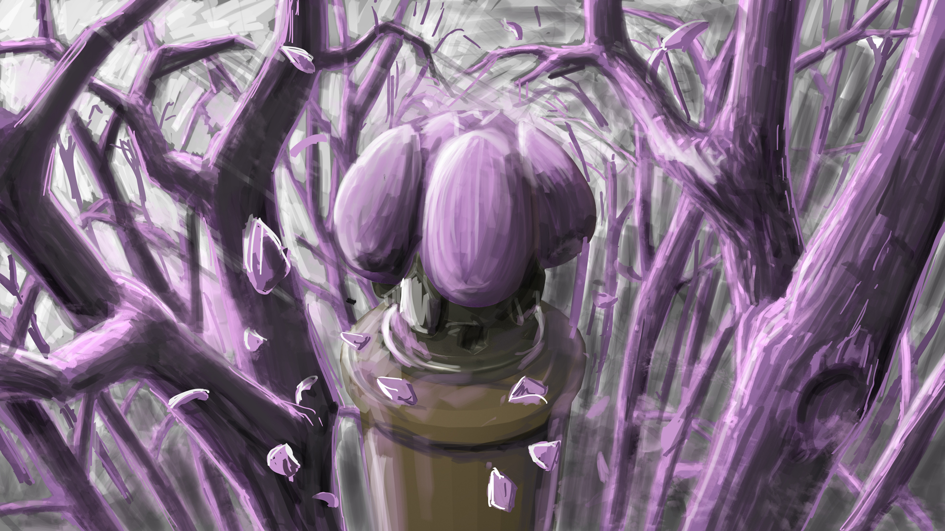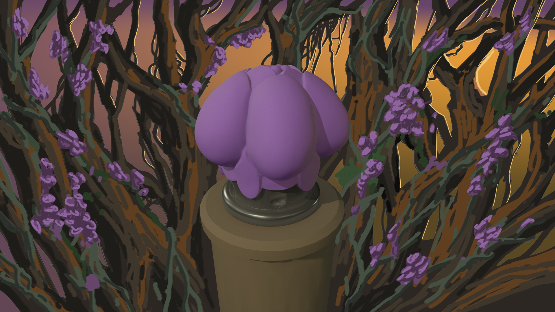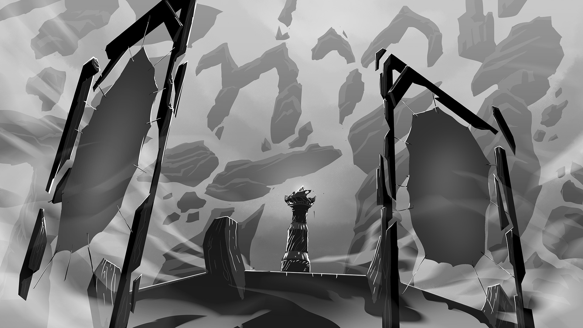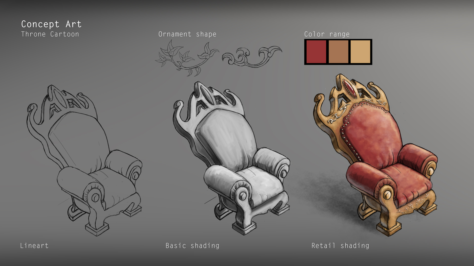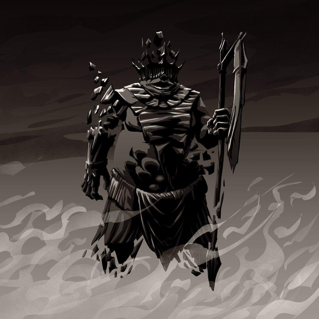 Concept art process for the Krocus crown of the soon to be "Krowns" boardgame from Random Therapy studio. This work began with the real sculpt modeling of the crown by "Hay Dee Toys". Lory Aline Cherpit then scanned the sculpt in 3D and refined it. I could finally use the 3D model to draw the surrounding environment, add details to the crown and add lighting.