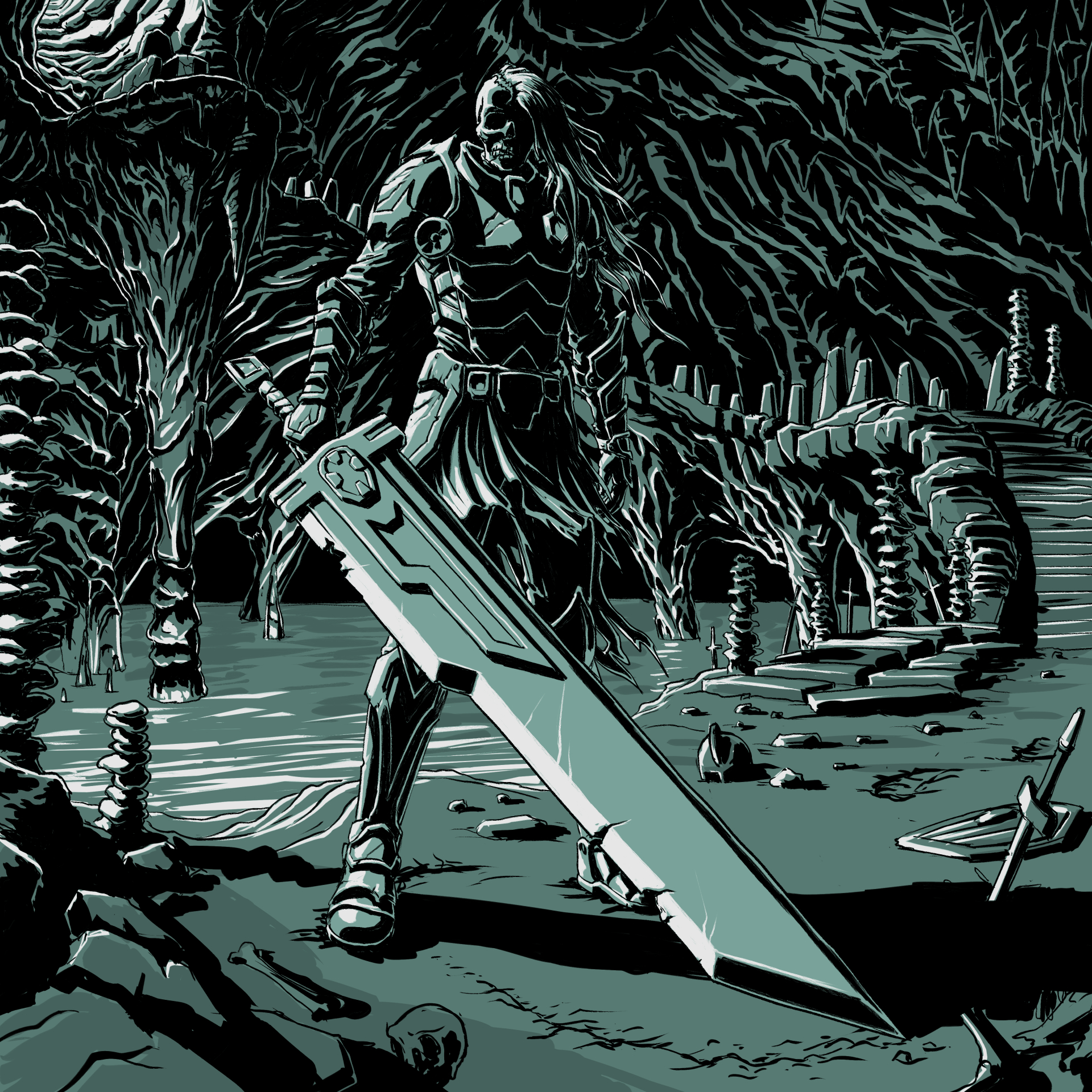Here are a few glimpses on a comic book project I’ve been working on in my spare time for the past two years. We’re following a young Shamane, «From-The-Sky», as she travels through the provinces of the First Nations of North America, on a quest to awaken the Tunderbird and ask for his help in repelling the invaders from the seas who threaten to destroy and rob these peoples who have always lived on their lands (2023)